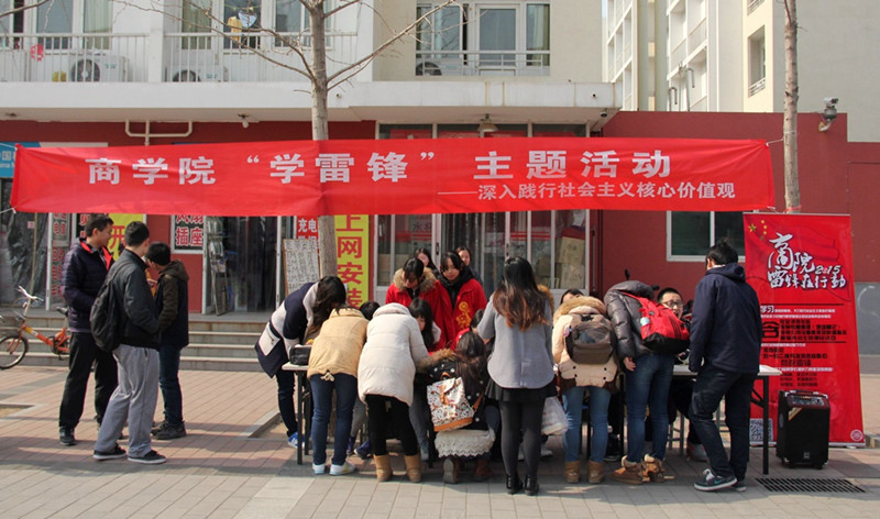 为大力弘扬雷锋精神,践行社会主义核心价值观,形成助人为乐良好校园风尚, “2015商院雷锋在行动”活动于3月5日在良乡校区龙月广场拉开帷幕,活动采取“需求登记、私人定制”的形式为全校师生服务,获得师生一致好评。