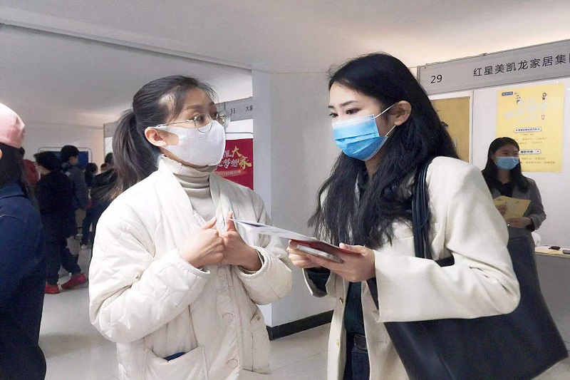 在活动现场,同学们在学院就业工作部同学的引导下,佩戴口罩,扫码签到,测量体温,有序进场。毕业生向企业投递简历,面对心仪企业人力部门的提问,认真思考,侃侃而谈,现场互动井然有序,氛围和谐活跃。当天活动现场不仅有应届生进行求职选拔,还有非毕业年级的同学们向企业询问求职类相关问题以及部分实习岗位的应聘,企业招聘工作人员对同学们提出的问题给予耐心解答。校园双选会持续了约三个小时,于下午5点圆满结束,整场双选会充分展现了商院应届学生良好的精神面貌和求职能力。