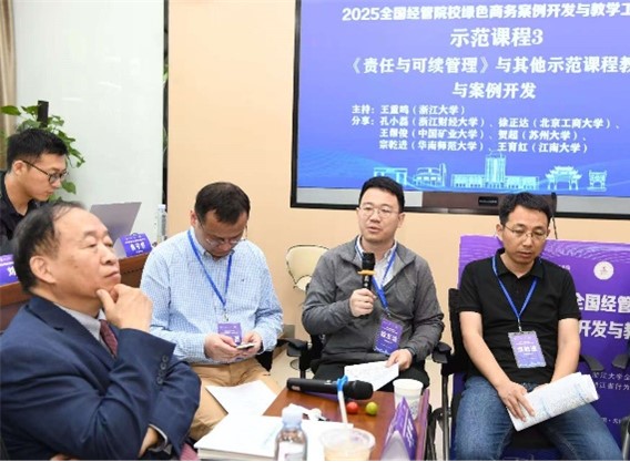 本次工作坊设置“专题报告”“圆桌论坛”“交流分享”“会议总结”四大研讨模块。在“绿色商务案例开发”及“示范课程建设”等圆桌论坛中,赵川教授详细介绍了我院在BGA国际金牌认证过程中积累的绿色管理教育经验,以及近年来在案例建设方面取得的成果,其提出的“产教融合案例开发体系”引发与会代表高度关注和认可。徐正达副教授以《创业能力》及《责任与可持续管理》课程为例,系统解析将可持续发展理念融入MBA教育的实践模式,并和与会教师进行了深入的讨论。