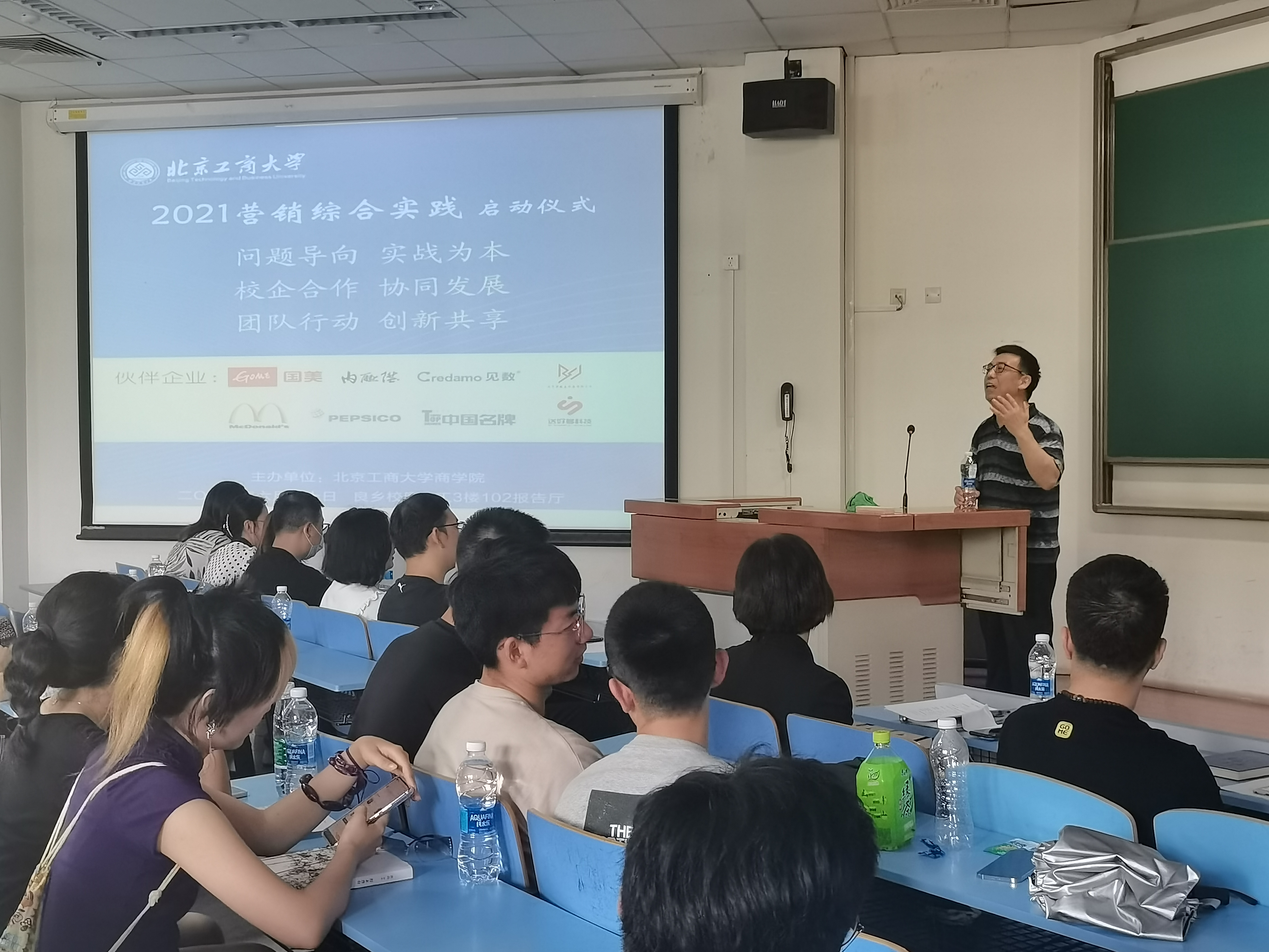 毛新述院长在致辞中对各企业领导的到来表示热烈欢迎,并对各企业给予营销综合实践项目的支持表示衷心感谢,他指出营销综合实践项目是我校市场营销系的特色项目,通过长期努力,市场营销系已经与麦当劳(中国)、百事可乐、国美电器、内联升等多家名企建立了长期稳定的校企合作关系。该项目以团队方式围绕企业发展中的实际问题开展调查研究并提出解决问题的方案,既能推动我校市场营销专业的建设和发展,也能促进企业实际问题的解决和企业的发展,真正实现了学校、企业和学生三方的合作共赢。