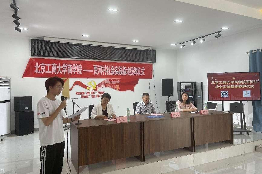 为进一步引导商院学子躬身实践,助力乡村振兴、服务首都发展,积极拓展和搭建商科学子实践平台,8月29日,无码流出 与房山区琉璃河镇贾河村举行社会实践基地授牌仪式,学院党委书记张春萍、副书记张倩、团委书记赵杰,贾河村党支部书记魏大明、支部委员贾建国、张凤文出席仪式,无码流出 15名暑期社会实践团成员参加活动。