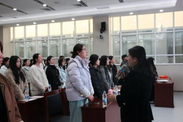 从象征建党初心的《南湖颂》,到展现土地革命热情的《八月桂花遍地开》;从歌颂红军长征胜利的《山丹丹花开红艳艳》,到彰显自力更生精神的《南泥湾》;再到气壮山河的《保卫黄河》与经典收尾的《没有共产党就没有新中国》,一首首红歌被赋予鲜活的历史注脚。邢老师不仅解读每首歌的创作背景与精神内涵,更带领同学们轻声跟唱、互动问答,让党史知识伴随旋律“声”入人心,让大家在歌声中重温峥嵘岁月,感悟信仰力量。