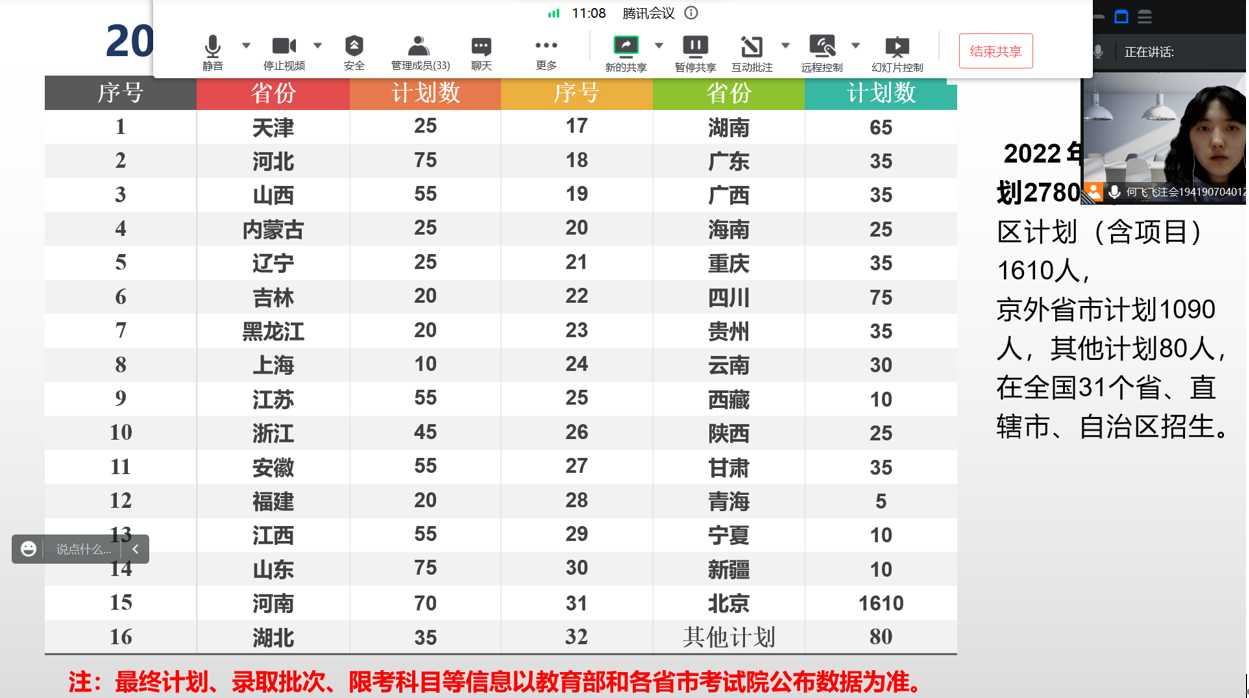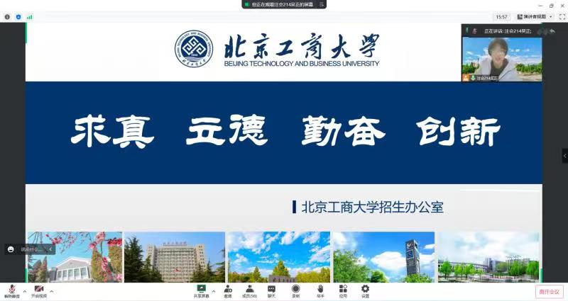 虽然因为疫情没能与高三同学们面对面进行交流,但宣讲人以耐心激昂的语态通过腾讯会议进行线上宣讲答疑,依然能够充分展现北工商的优势以及魅力,帮助了更多的高三同学确立的自己大学的目标方向。