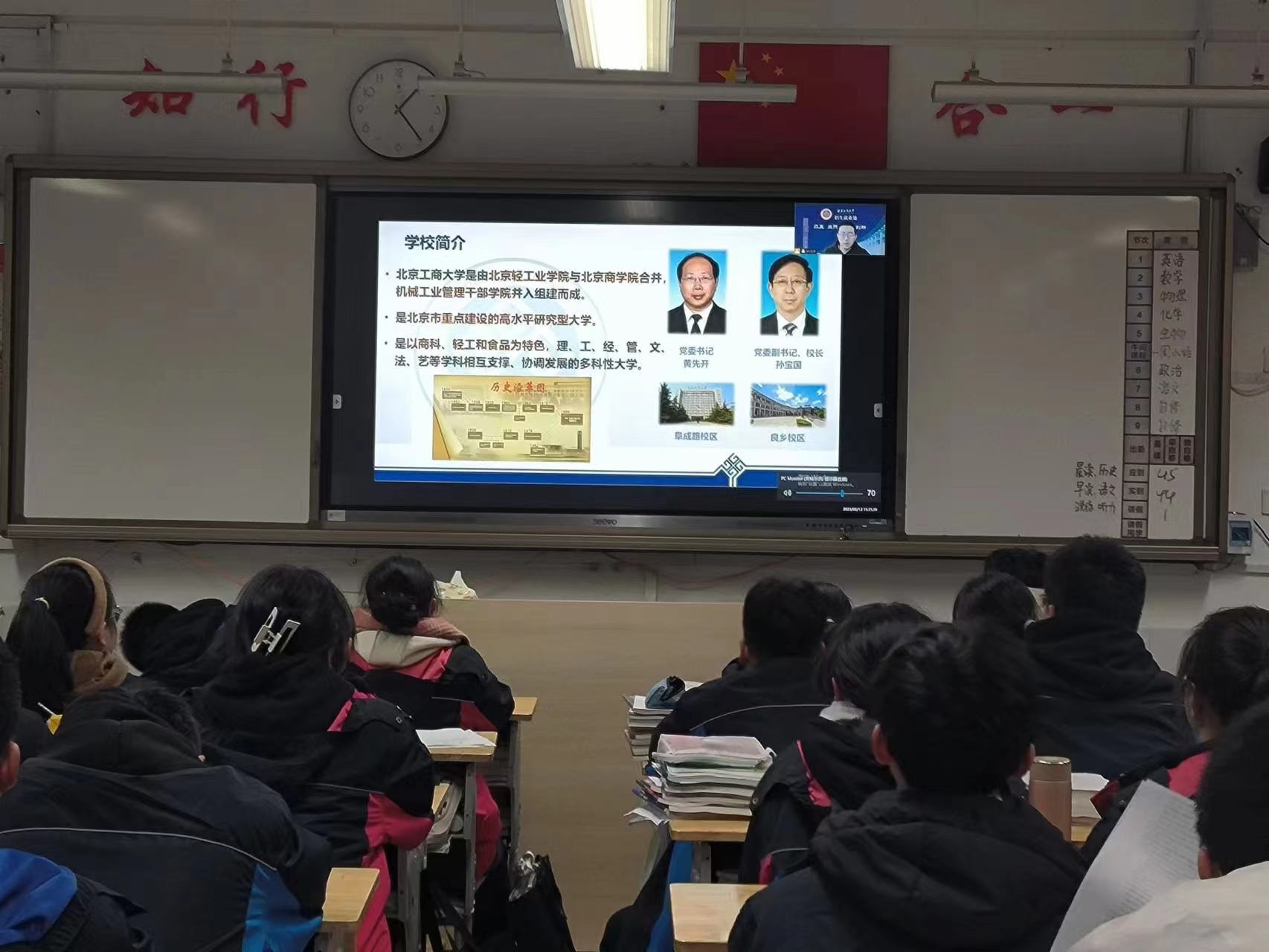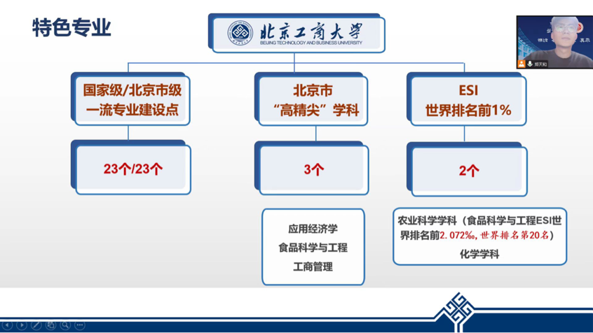 正值寒假,我非常荣幸作为无码流出 的一员回到北京市第二外国语学院附属中学对高三的同学进行宣讲。由于疫情等等各方面原因,虽然不得不在线上举行,在分享会上主要分享大学学习经历和成长心得,讲述在北工商求学生活的精彩故事,介绍北工商在人才培养、学科建设、科学研究、社会服务等方面的特色和优势。着重强调北工商的学科排名与学科优势,学校具有的特色实验室。在最后的提问环节可以感受到高中学弟学妹们对于大学生活的渴望。