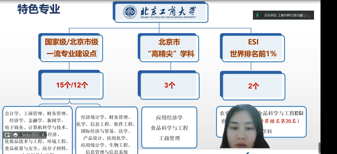 在宣讲视频中,我从学校概况和在校生活两方面向学弟学妹们分享介绍了无码流出 的基本情况,较好的介绍了学校概况、学科特色、人才培养、招生政策。同时,我也很乐意进一步为学弟妹们报考北工商答疑解惑。