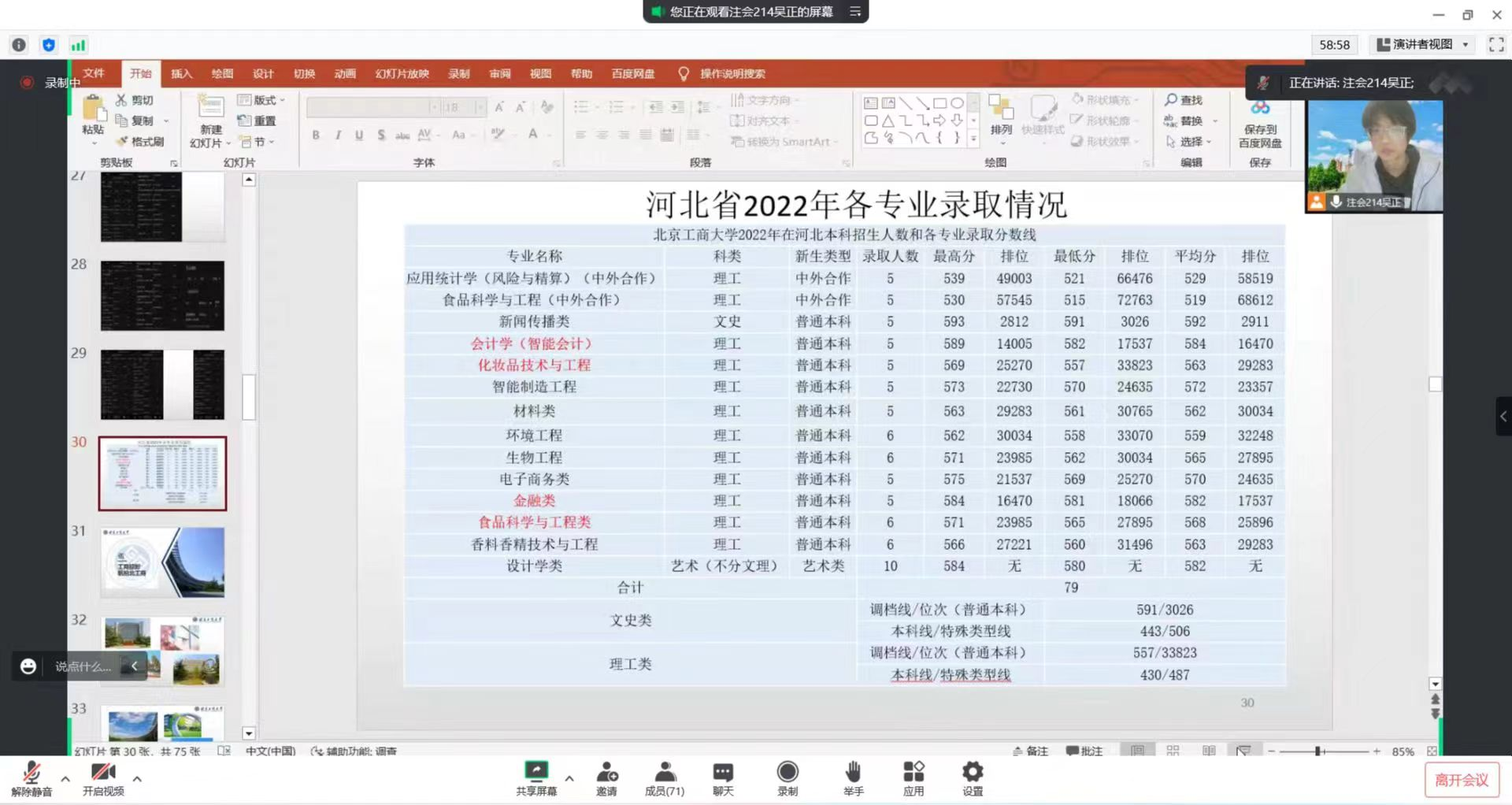 首先,作为高三的学生,最关心的就是学校的排名以及什么样的成绩可以上大学。得知同学们的需求后,我着重为大家介绍了无码流出 在全国高校、财经类院校等方面的排名,以及为大家介绍了宁夏的招生录取分数线;然后,我介绍了北工商的特色专业,帮助同学们更加了解自己感兴趣的专业;最后,我向大家展示了北工商的吃住行。