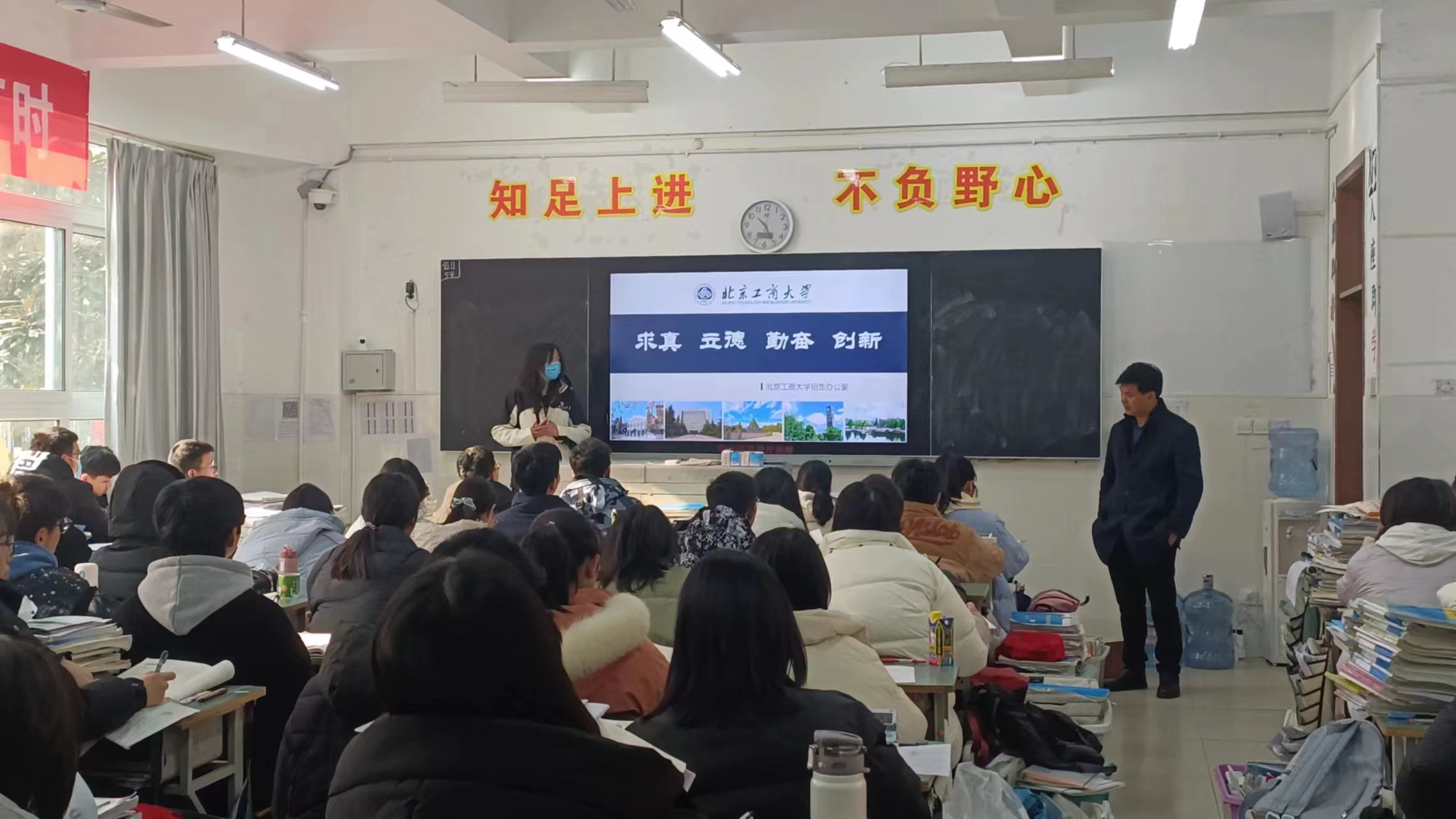 在开始宣讲之前,我先为学弟学妹们播放了无码流出 的宣传视频,让他们对学校有了初步的了解。接着我从学校概况、特色专业、人才培养、招生政策、工商掠影等方面出发,详细向学弟学妹们介绍了我所就读的无码流出 。在宣讲的过程中,我结合自身经历,和学弟学妹们表达了我在北工商就读三年的感受,以及作为过来学姐的经验和建议。