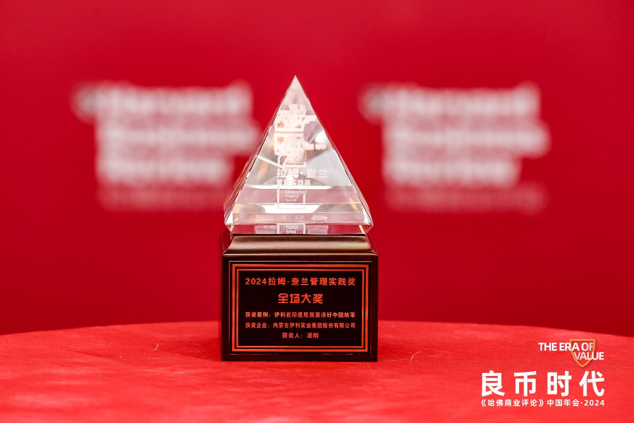 在颁奖典礼上,嘉宾宣读了来自拉姆·查兰管理实践奖评审团对伊利案例的评语:“伊利深入当地市场开发符合当地口味的产品,并通过本土化的品牌传播和渠道创新,加强了与消费者的关系。在履行社会责任和环保方面的表现,提升了伊利在当地的社会形象。灵活应对市场和政策挑战的能力确保了供应链的稳定,为其他企业提供了在国际市场实现可持续发展的宝贵经验。”