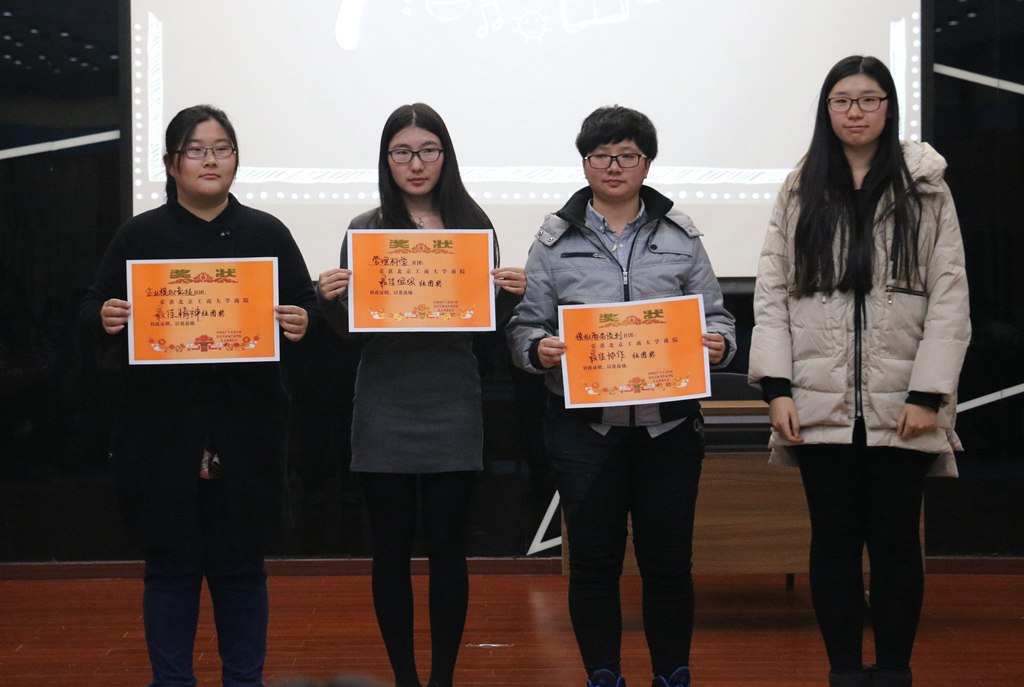 最后,大会进入评奖环节,由15级辅导员丁璇老师、学生会副主席刘文怡为各社团颁发奖项:旅游协会获得最佳活动社团奖,创业与实践协会获得最佳进取奖,未来会计师协会获得最佳风貌奖,管理科学协会获得最佳组织奖,模拟商务谈判协会获得最佳协作奖,企业模拟竞技协会获得最佳精神社团奖。