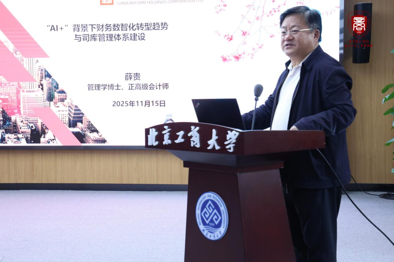 国新数据有限责任公司副总经理、国新集团财务有限责任公司董事薛贵围绕“AI+背景下财务数智化转型趋势与司库管理体系建设”作了深度解读。薛总从“大智移云”切入,提出AI赋能智能司库的“感知-认知-慧知”三层应用体系,并强调了人工智能时代财务人才应具备技术融合、数据驱动决策的思维、跨领域协作能力以及伦理法律合规意识。
