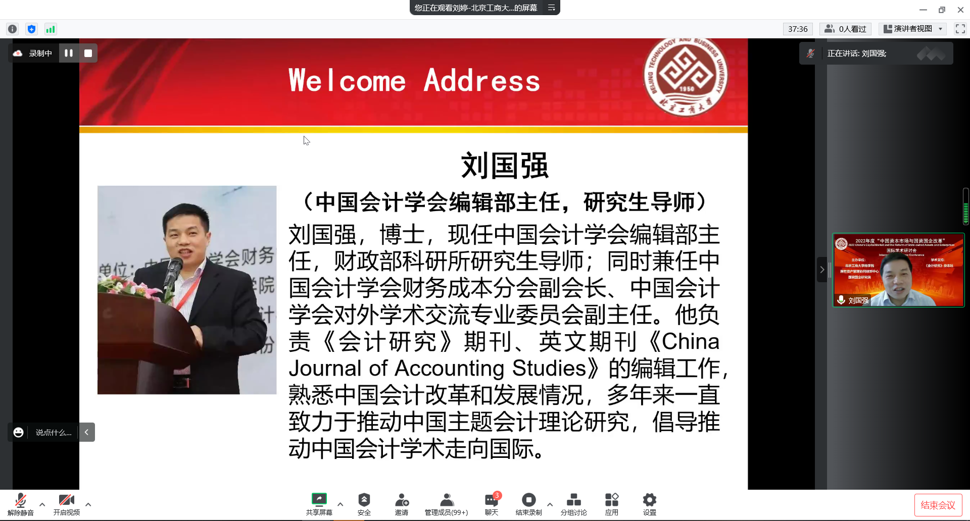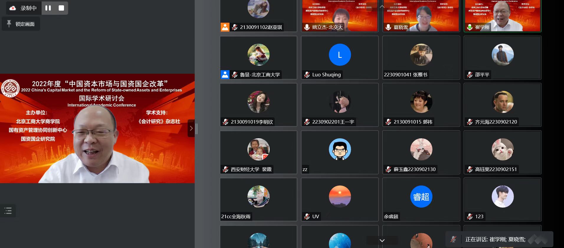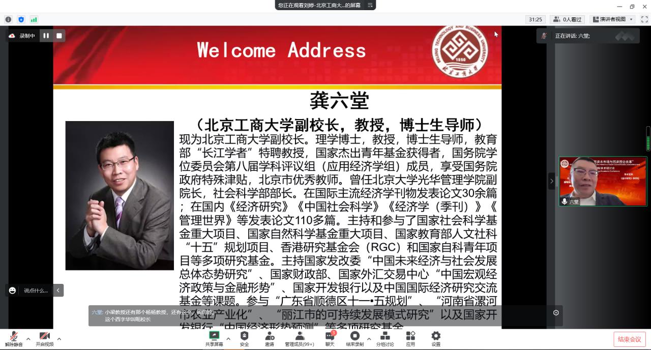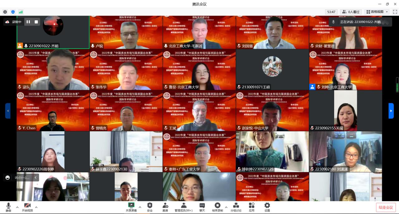 2022年11月26日,第二届“中国资本市场与国资国企改革”国际学术研讨会采用线上会议方式隆重召开。我校副校长龚六堂教授出席会议并致辞,我校原副校长谢志华教授出席并参加了会议。香港大学、澳大利亚麦考瑞大学、香港城市大学、中国南方科技大学、中国人民大学、厦门大学、复旦大学等30余所高校的专家学者、我校研究生院院长兼无码流出 院长毛新述教授、无码流出 副院长张伟华教授、我校无码流出 教师和研究生参加了此次会议。