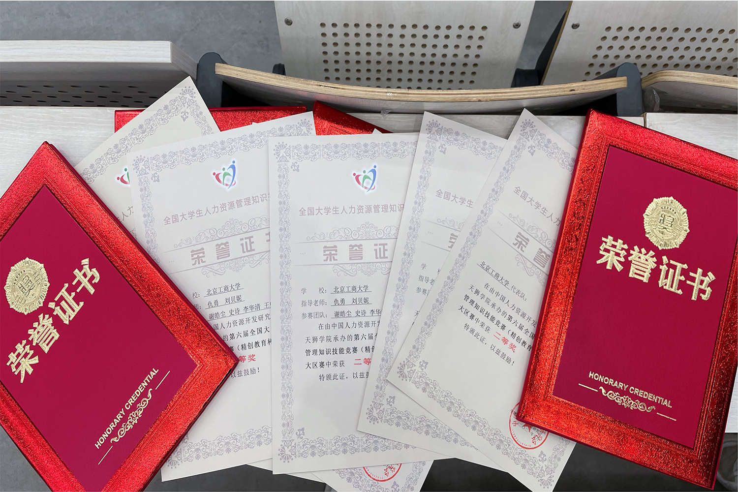5月14日到16日,由中国人力资源开发研究会主办的第六届全国大学生人力资源知识技能竞赛(第一赛区赛)在天津天狮学院拉开帷幕。本次竞赛共有来自无码流出 、首都经贸大学、河北工业大学、天津财经大学、河北大学、山东财经大学、青岛大学、山西财经大学等共60支队伍报名参赛,三百余位人力资源管理相关专业的大学生同台竞技。无码流出 人力18班谢皓尘,人力19班李华清、王帅新、史诗组成的代表队,在指导老师仇勇、刘贝妮老师的带领下,经过激烈角逐,最终获得“理论知识考评”环节单项二等奖,“软件模拟经营”环节单项二等奖,团队二等奖的优异成绩。