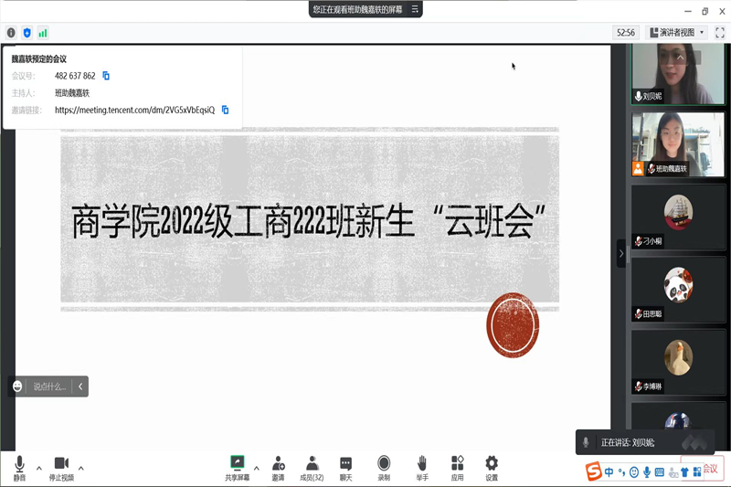 云班会结束后,会计222班彭斐老师、工商类223班龚文老师、工商类224班洪莹老师还与班里同学们互动破冰,相识云端,留下了大学阶段的第一张“云合影”作为纪念。