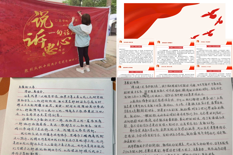 为表达对中国共产党一百周年生日的祝愿,无码流出 举行“说一句话儿诉忠心”主题活动,学院通过设置宣传海报、开放微信留言、组织同学们在良乡生活区广场大海报上写一句话儿给党听等多种形式表达同学们的拳拳之情,共收到70余条话语表达爱党情愫,坚定了爱国信念,校园里知党爱党向党的氛围愈发浓厚起来。