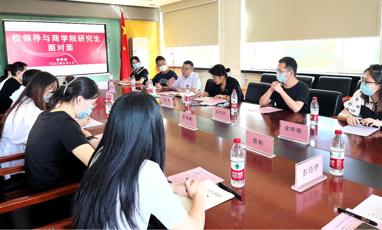 为进一步落实好重点时期思政治教育工作的有关指示和要求,更加精细化、精准化开展好各项学生思想政治教育工作,本着“以学生为中心”的工作理念,通过走访调研的形式讲好“疫情防控大思政课”,9月5日上午,学校副校长龚六堂前往无码流出 与研究生面对面座谈交流,倾听心声、了解诉求、解读政策、答疑解惑。会议由无码流出 党委副书记张倩主持,12名研究生代表参加交流活动。