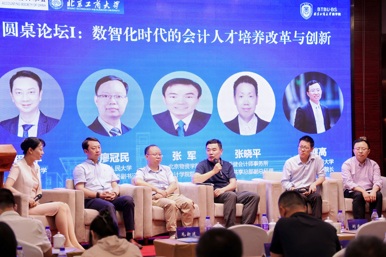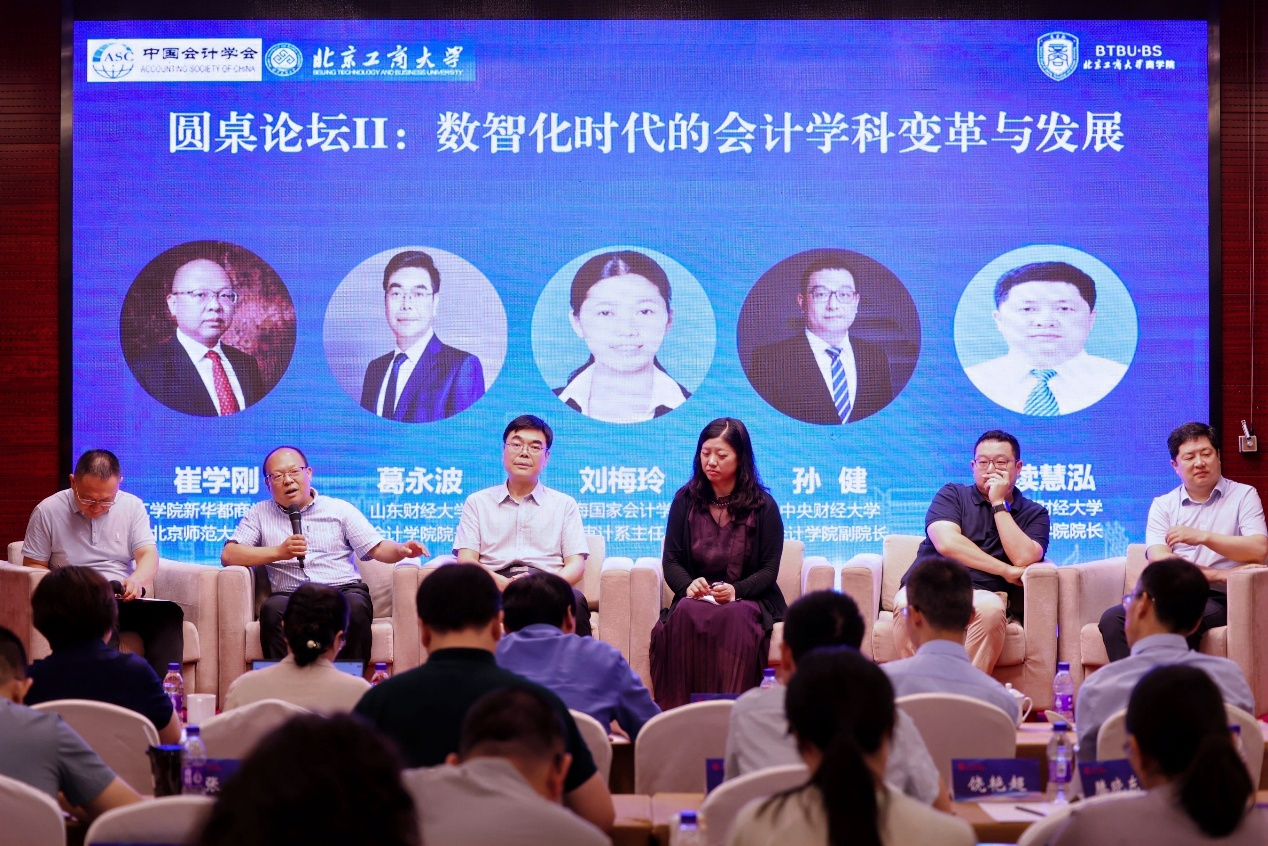 圆桌论坛分为上下两场。在“数智化时代的会计人才培养改革与创新”圆桌论坛环节,重庆理工大学会计学院程平教授、中国人民大学无码流出 党委副书记廖冠民教授、北京物资学院会计学院院长张军教授、天健会计师事务所数据共享总部副总经理张晓平、对外经济贸易大学国际无码流出 副院长祝继高教授分别从高校人才培养、用人单位需求等分享所在高校优秀经验和典型做法,以及会计师事务所对会计人才培养的改进建议。