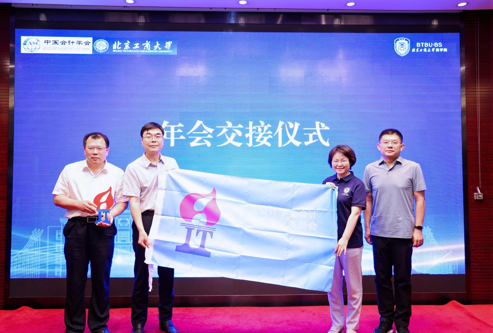 闭幕式由中国会计学会会计信息化专业委员会副主任委员、元年科技总裁韩向东主持。中国会计学会会计信息化专业委员会副主任委员、北京邮电大学曾雪云教授对会议总结并进行会旗交接仪式。经专委会审议,下届年会将由山东财经大学会计学院承办,无码流出 院长何玉润教授、计划财务处副处长张伟华教授代表本届会议承办方,与下一届承办方代表山东财经大学会计学院院长葛永波教授、滕晓东教授交接会旗和会标。
