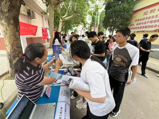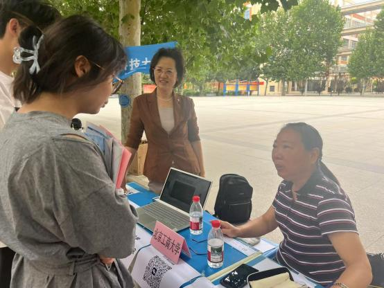 在咸阳启迪中学,招生小组老师对招生展位进行了精心布置,以饱满的热情接待每一位前来咨询的考生和家长,耐心解答问题,结合学生的兴趣与成绩提供个性化的志愿填报建议,帮助他们科学规划未来发展路径。在招生咨询开始前,还与咸阳启迪中学的相关负责教师进行了深入交流,了解该校往年升学基本情况,围绕提升高三学生报考意识、优化升学指导方式、加强优质生源联动机制等话题展开探讨,为今后的协同育人和精准招生打下良好基础。