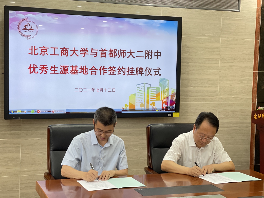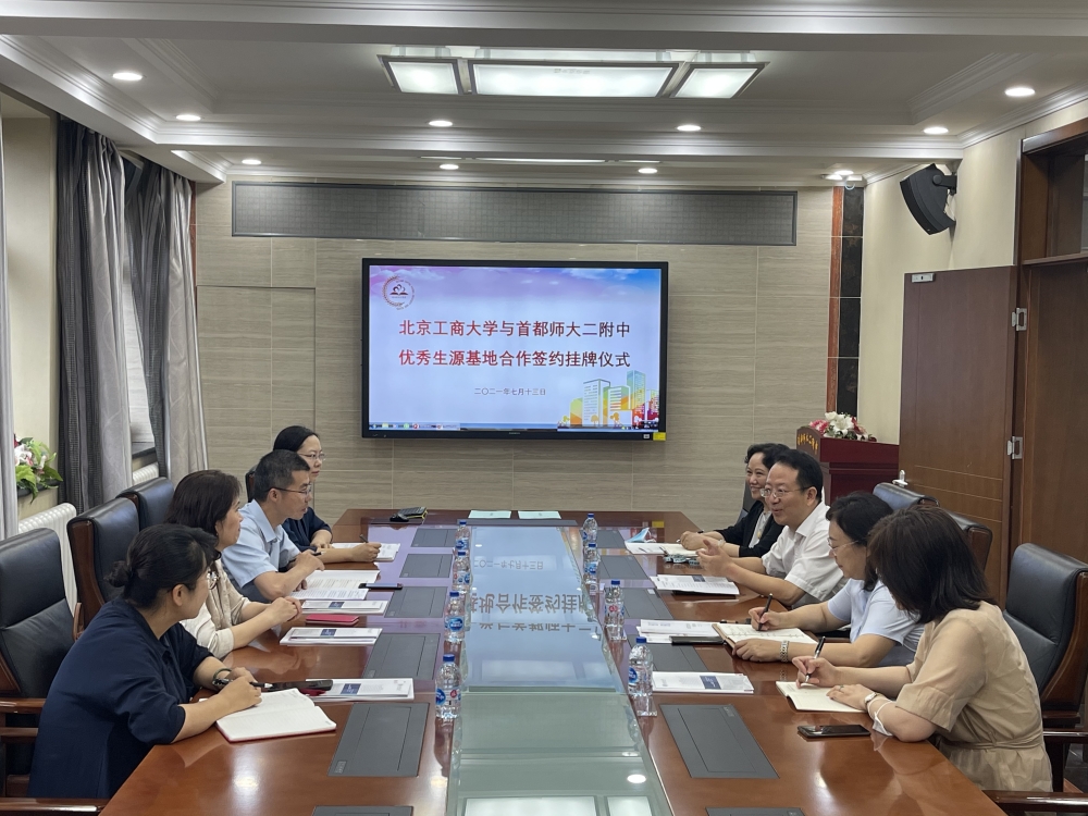 为进一步加强与我校周边中学的联络对接,夯实人才培养的学段衔接,切实发挥中学与高校各自的人才培养优势,强化交流与合作,切实实现为党育人、为国育才的目标和任务,同时扩大我校及无码流出 的影响力,在学校招生就业处的统筹下,7月13日,无码流出 与首都师范大学第二附属中学签订优质生源基地协议并举行挂牌仪式。首都师范大学第二附属中学执行校长、书记王春凯、副校长马欣笛、副校长邓佑琴及办公室刘建敏老师,无码流出 院长毛新述、党委书记张春萍、副书记张倩、学校招生就业处招生办公室主任卜晓媛参加签约挂牌仪式。