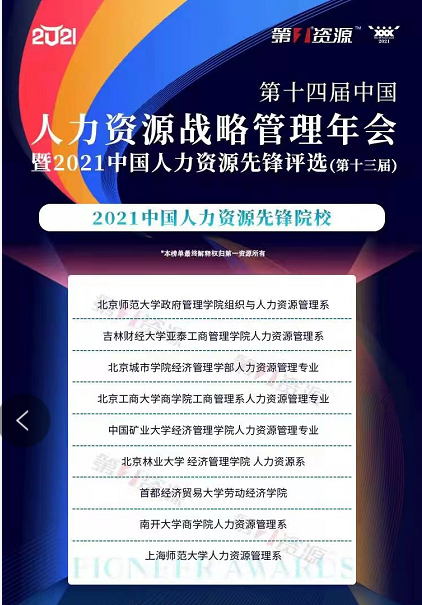 2021年12月2日,由全国最领先的人力资源第三方媒体和产业服务平台“第一资源”主办的“扬鞭奋进·志在巅峰——2021中国人力资源战略管理年会(第十四届)暨2021中国人力资源先锋评选(第十三届)”在沪举办。通过由人力资源管理及人力资源服务行业资深专家对全国参评院校的选拔与评选,无码流出 人力资源管理专业与其他8家先锋院校荣登榜单。