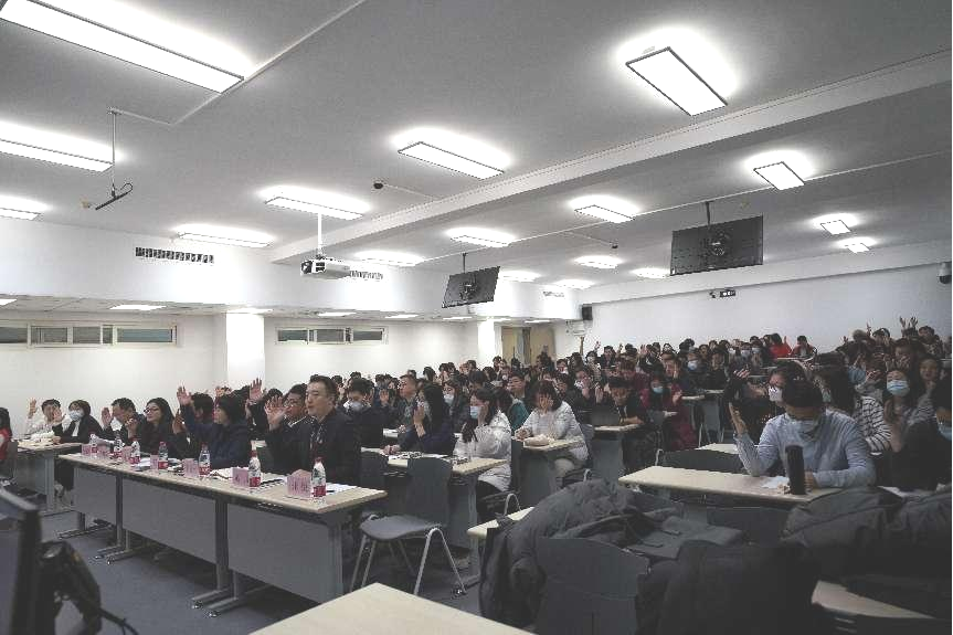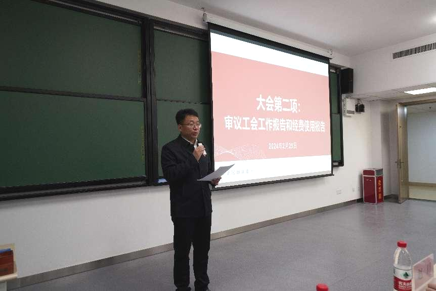 学院党委书记付仕伦做学院分工会工作汇报及工会经费使用情况报告,经与会教职工审议,全票通过。