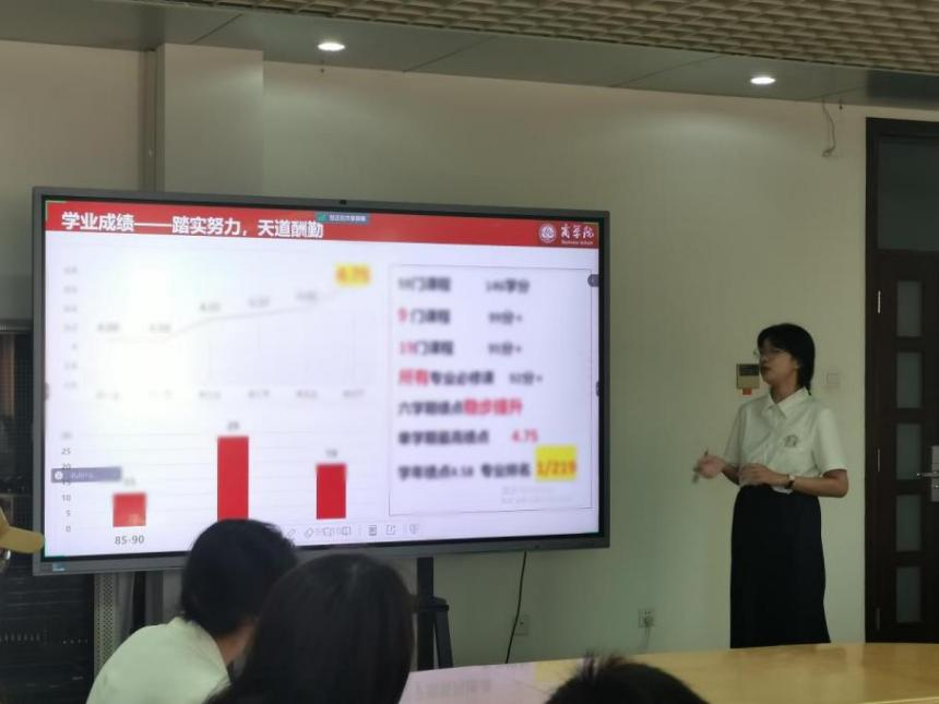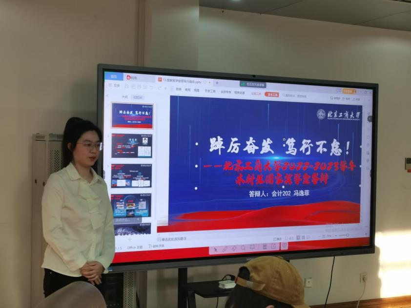 通过前期自荐报名、材料审核等环节,无码流出 共有15名同学成功入围2022-2023学年本科生国家奖学金评定院级候选人。在答辩环节,大家按照抽签顺序依次上场展示。15位候选人从学术研究、学科竞赛、创新发明、社会实践、社会工作等多个方面介绍自己,并将个人的成长发展内驱力及价值追求融入答辩中,通过2分半的时间,将三年来的积累积淀及成长发展情况用PPT进行全面展示,用精彩的演讲和表现赢得评委们的认可和肯定。