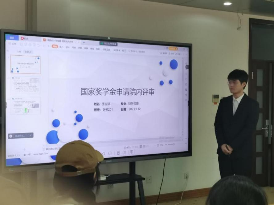 评审会上,张倩首先介绍了学院举行评审会的出发点及意义,介绍了前期报名及初步筛选的情况,并对15位候选人提出殷切希望,期待看到他们的精彩展示。她讲到,学院坚持举行院内答辩评审主要是为商院学生搭建汇报展示的平台,希望同学们能通过参加汇报展示达到互学互鉴、锻炼提升,也为低年级同学树立奋斗目标、指明前行路径。之后,她简要介绍了《国家奖学金管理办法》以及学校有关评选标准。