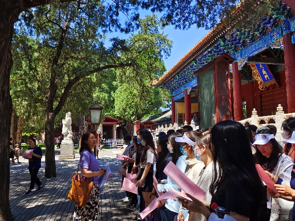 师生们饶有兴致地先后穿过和参观先师门、大成门、十三经碑林、大成殿、崇圣祠、辟雍等处,在“沉浸式”体悟中华优秀传统文化之美,在厚重的历史中感受师道精神。师生们细致参观了中国古代科举制度展,由浅入深对历经千年的人才选拔制度进行了系统的了解。大家表示,科举制反映着中国古代教育的发展历程、对人才培养的重视和中华民族对公平公正的价值追求。在国子监,师生们观摩了古代学生们的课程,他们学习的内容包括儒家经典、诗歌、书法等,这些课程充分体现了中国古代教育的综合性。