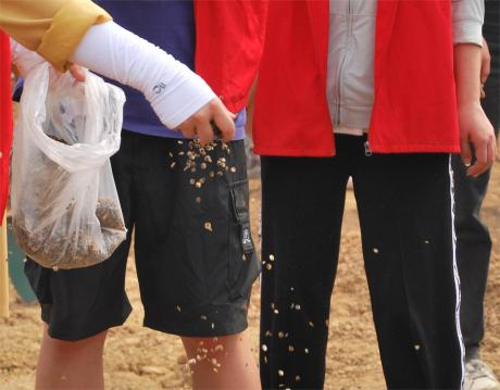 在老师们的带领下,同学们高效的完成了播种的工作,积极的为刚刚种下的种子浇水。