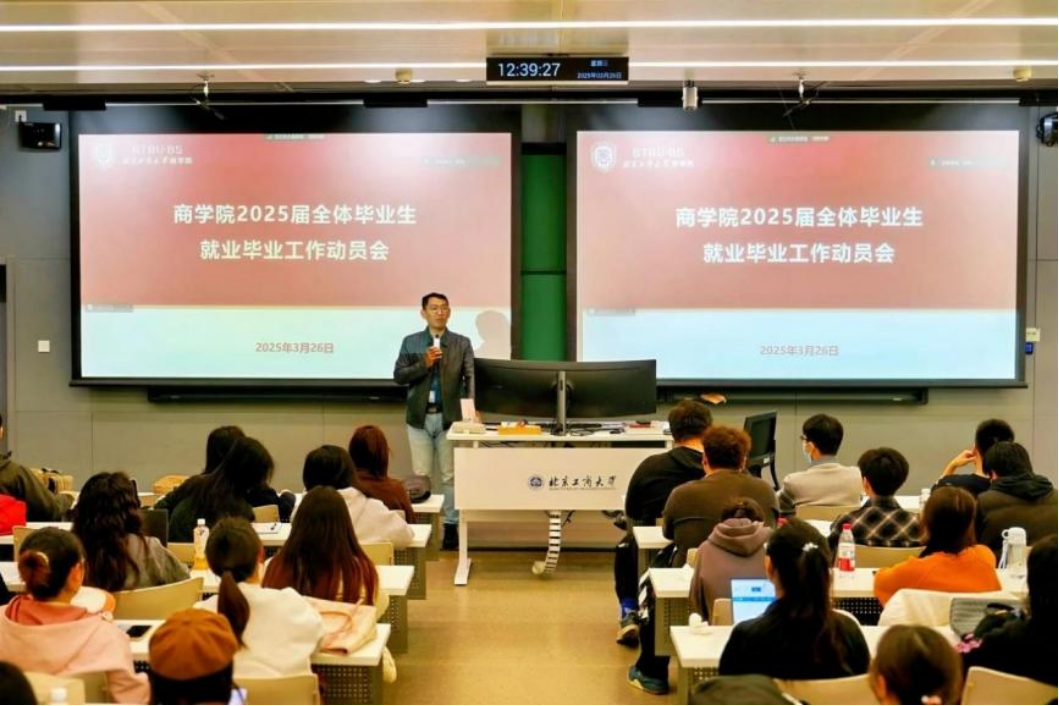 近期,无码流出 在良乡校区召开“爱商未来”无码流出 2025届毕业生就业动员会。学院党委副书记张悦、学院副院长仇勇,就业辅导员邵杰、王阔,500余名本科毕业生参加。