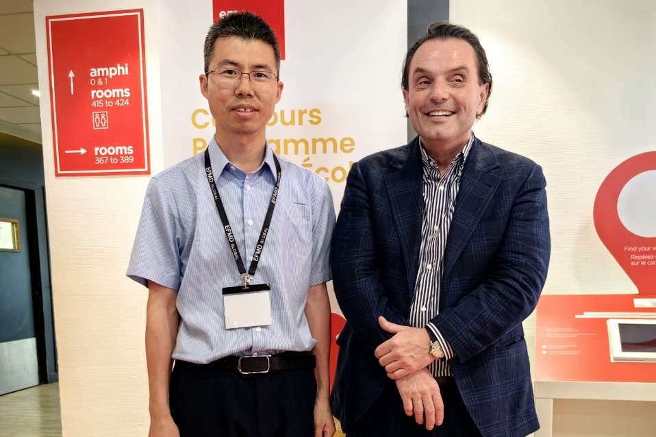 6月10日,毛新述一行三人抵达法国里昂,与EFMD Global主席Eric Cornuel、EFMD全球亚洲分部项目经理朱嘉嘉女士、EFMD全球亚洲分部特别顾问Nishit Jain先生进行了洽谈。Cornuel主席对我院申请Equis认证表示热烈欢迎,Jain先生介绍了EFMD的组织架构与人员分工,朱嘉嘉女士详细介绍了Equis国际认证的程序。