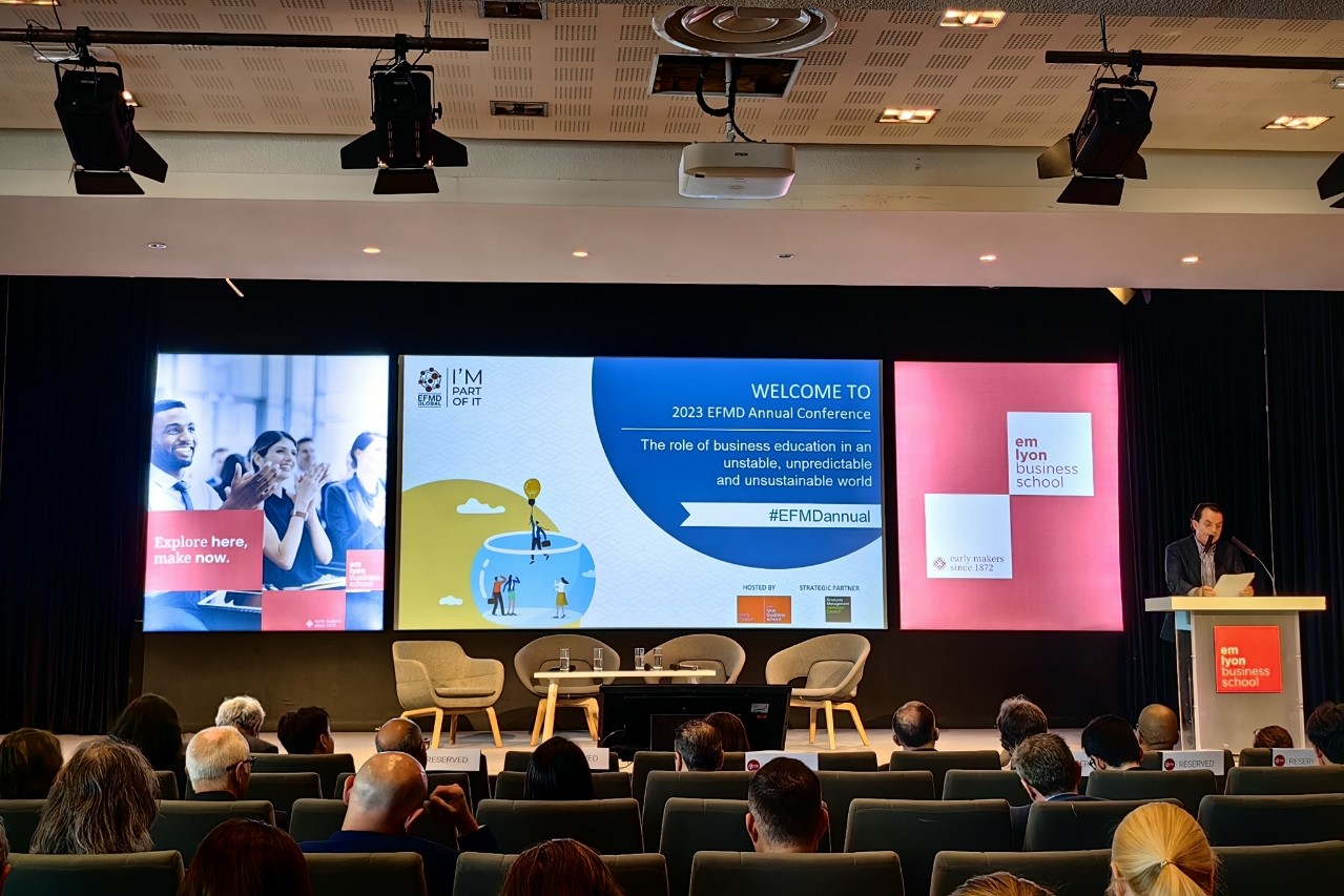 6月11日-6月13日,2023年度EFMD全球年会在Emlyon无码流出 会议中心隆重召开。600余名来自全球各高校的院长、主任、教授齐聚一堂。首先,EFMD Global主席Eric Cornuel致开幕词。会议的主题是“The role of business education in an unstable, unpredictable and unsustainable world”。他邀请了Emlyon无码流出 院长Isabelle Huault女士、Gordon Institute of Business Science University of Pretoria无码流出 院长Morris Mthombeni教授致辞。会议组织了四场主题圆桌论坛,包括: Leading through uncertainty: How business schools are innovating in turbulent times;Leadership development in times of turmoil;Careers and purpose:the search of truth;Climate leadership:Dilemmas for business leaders。11位院长、学者分享了观点。会议开设了12场平行论坛,内容涵盖责任研究的趋势,EFMD无码流出 毕业生职业发展调查,在不稳定、不可预测与不可持续发展世界的新商业模型,聚焦气候变化中无码流出 的领导责任,人工智能对无码流出 的挑战,对毕业生能力需求的企业调查报告,AI对无码流出 的挑战,教学影响的新观点,食品企业作为幸福的源泉,碳中和无码流出 的最佳实践,国际化的未来,课程设置的创新,如何在一个不可预测的环境中通过价值创造型学院社区实现稳定性。最后,进行了EFMD 全球网络年度总集会和颁奖典礼。期间,毛新述一行与来自中国大陆、秘鲁、南非等全球多所高校的院长进行了交流,双方表达了合作意向。