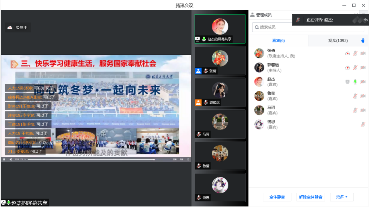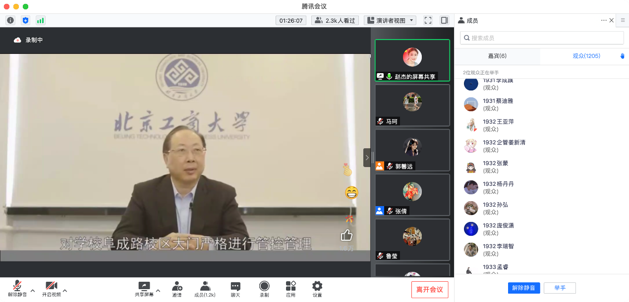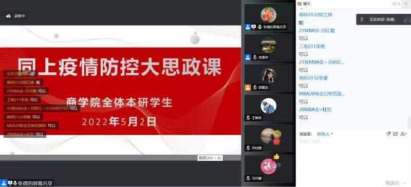 近期,学校受周边疫情影响被划定为临时管控区。为引导学生用实际行动配合学校及属地做好防疫抗疫工作,做好居家线上学习期间的思想政治教育,5月2日下午,无码流出 组织全院本硕博学生通过腾讯会议相聚云端,共上一堂“疫情防控大思政课”,聆听学校党委书记黄先开、校长孙宝国对青年学子的谆谆教诲,无码流出 党委副书记、全体辅导员及本科生研究生2300余人共同参加学习。