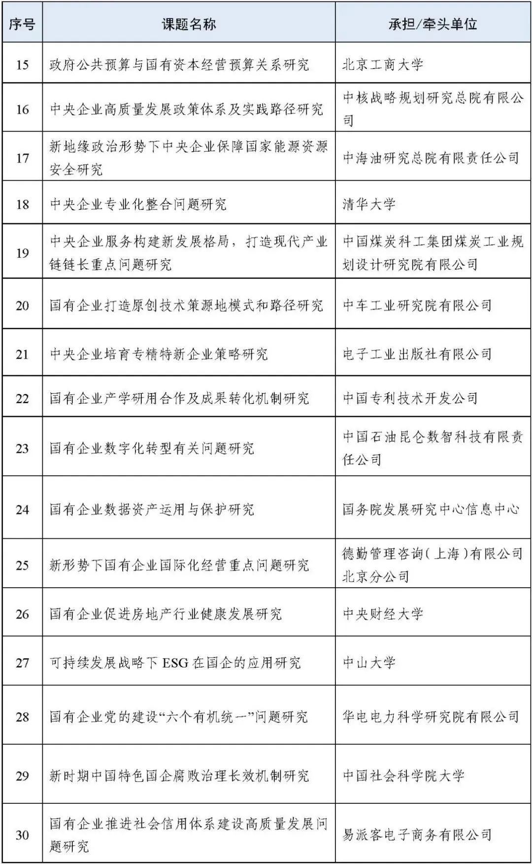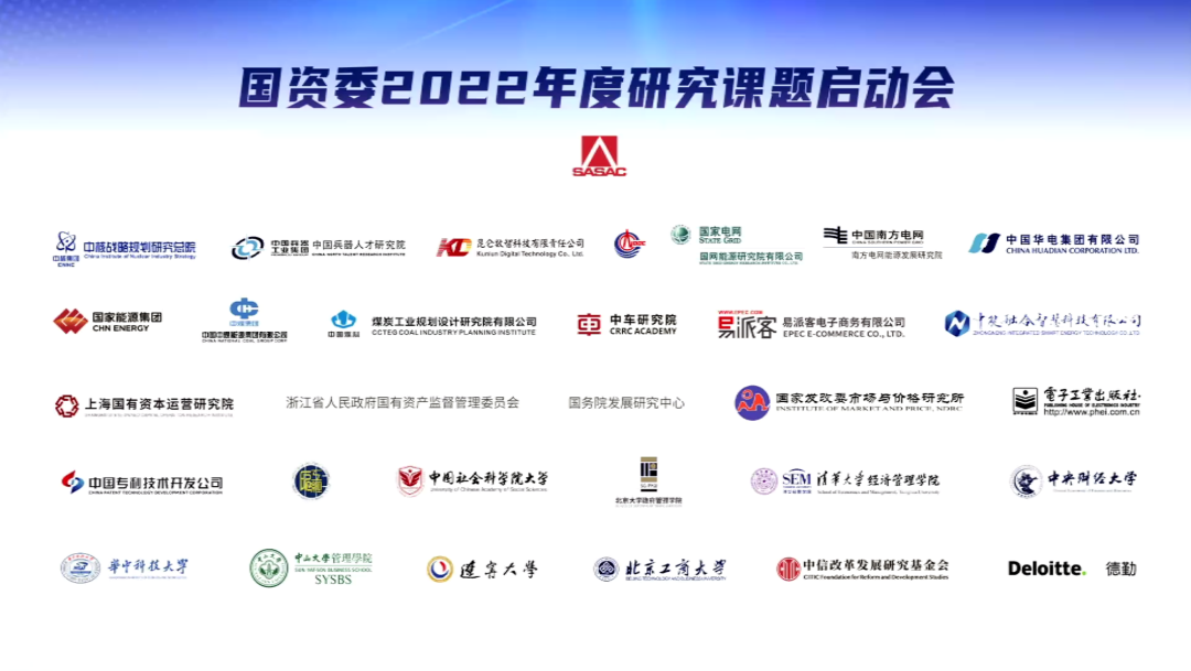 2022年11月24日下午,国务院国有资产监督委员会以线上线下结合的方式组织召开2022年度研究课题启动会,会议宣布了课题承担单位名单,各与会代表共同研讨了国资国企重大课题研究推进工作。会议由国务院国资委党委委员、秘书长彭华岗主持,国务院国资委党委委员、副主任翁杰明出席会议并发表重要讲话。