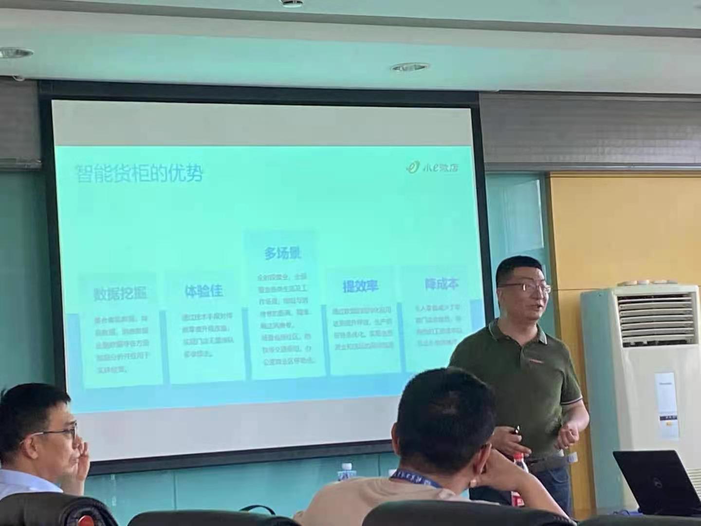 讲座中,荣总围绕“国内无人零售行业发展情况、智能货柜市场情况、对无人零售及智能货柜未来发展趋势的判断、小e微店在无人零售领域的发展情况”等话题,详细介绍了智能货柜的应用情况、优缺点、发展因素以及小e微店智能货柜的实景展示等内容。通过荣总的详细讲解,同学们对无人零售行业的过去、现在以及未来的发展进程有了更为直观的认识。