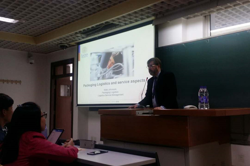 在17日下午的良乡校区讲座中,Mats教授以“Packaging supply chain: an European perspective”为题,首先从三个方面分享了他对于包装物流的研究,包括包装物流的涵义、包装物流在供应链中的位置和重要性、包装物流在现今社会的发展状况和突出问题,并着重描述了包装浪费的现象。而后,Mats教授为在座同学介绍了他的母校瑞典隆德大学(Lund University)。隆德大学是一所顶级综合性大学,创办于1666年,目前有四万七千名在校生,其中包括将近3000名研究生,650位教授以及800位高级讲师,每年有1000名左右的学生被交换到全球各地。Mats教授非常欢迎在座的老师和同学们到隆德大学访问。物流管理系的张浩、赵川、张倩等老师参加了本次讲座。