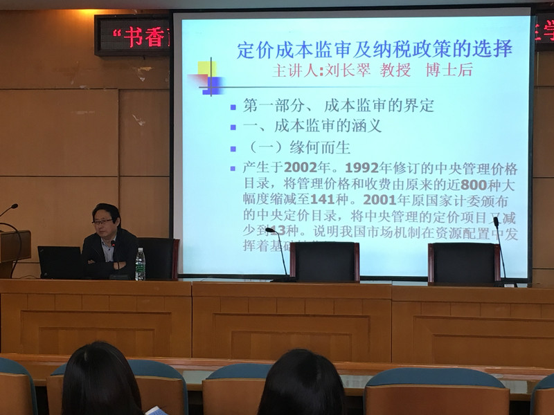 为让我院MPAcc学生对垄断企业定价成本监审及纳税政策的选择相关知识及实践运行有更入的理解,2017年4月19日下午,我院MPAcc中心邀请北京市发改委成本调查队副队长刘长翠博士做了“定价成本监审及纳税政策的选择”的讲座。无码流出 全体MPAcc研究生、部分财务会计学术类研究生到场倾听了讲座。