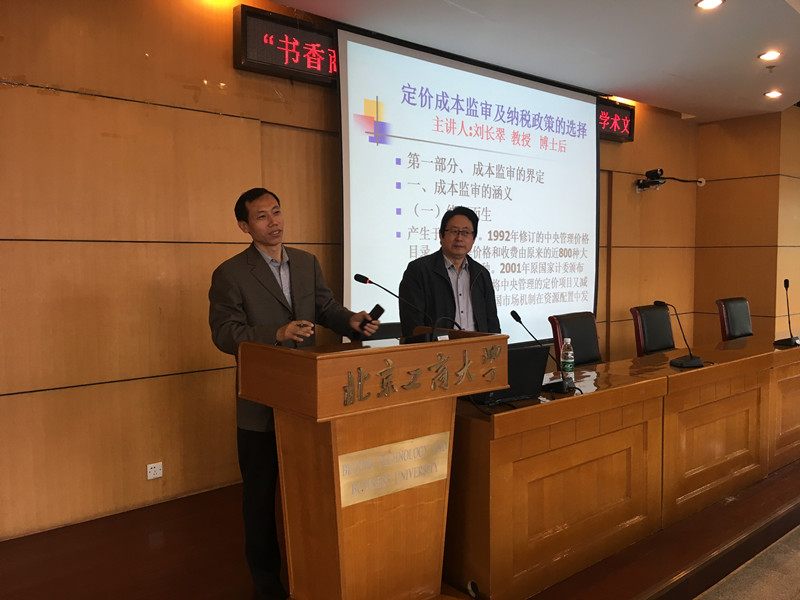 刘长翠先生有着丰富的与政府成本监审及纳税政策相关的工作经验,并有着深厚的理论基础。刘先生结合自己的实际工作经验及有关案例,从成本监审的界定讲起,介绍了成本监审的涵义,并阐述了成本监审与企业成本核算的区别。重点讲解了成本监审的技术路线,主要有:制定监审的定价成本指标体系、向经营者送达成本监审通知书、进行实地审核和汇总、经充分听取经营者的意见后,出具监审结论,撰写监审报告等。然后提出了我国成本监审所存在的问题,他认为我国主要存在缺乏具体的审核标准、除自来水行业的人数及折旧年限外,目前几乎没有合理的支出定额(如材料消耗定额、大修理费定额、会议费、办公面积及费用、三公经费等)、对政府投资提取的折旧及共同费用的分配标准无统一规定,尤其缺乏行业折旧年限表、成本加成定价模式使企业缺乏自我约束成本的动力、以手工操作为主,工作效率不高等一系列的问题。最后根据所提出的问题总结了一下对策:加大成本约束力度、制定各行业成本监审细则(目前包括:水利工程供水、城市供水、物业、高等教育、电力)或完善企业所得税税法、引入定额成本(这也是税法需要考虑的,以防止避税)、建立成本核算模型及开发成本监审软件,提高工作效率等。其中刘博士也列举了许多在工作中遇到的相关实例,加强了学生对理论的理解与掌握。