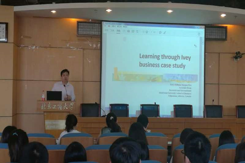 2016、2017级会计学术型研究生、会计专业硕士及MBA学员共计60余人在综合楼三层报告厅聆听了讲座。讲座题目为“Research and Publication with Ivey cases(毅伟商业案例研究)”。