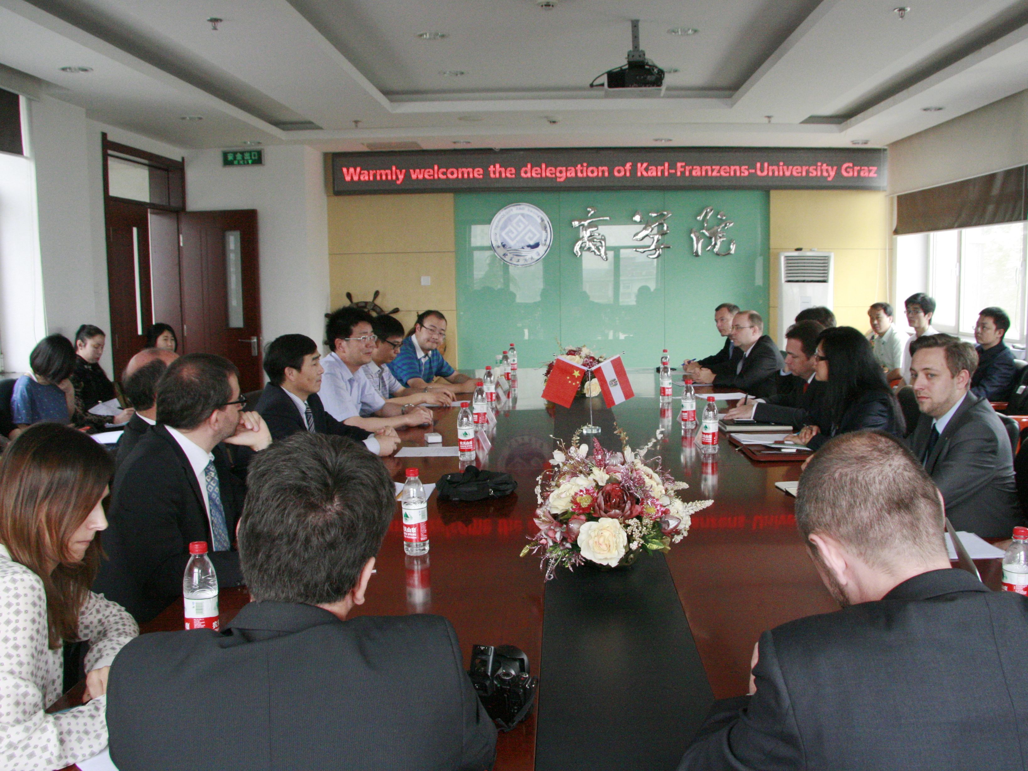 2012年5 月19 日上午,奥地利格拉兹大学 EMBA 师生代表团一行 18 人来我校交流访问,无码流出 组织举行了欢迎仪式。在欢迎仪式上,国际交流与合作处处长何明珂教授致欢迎辞并介绍了我校在开展国际交流与合作方面的基本情况和 MBA 教育在我校学科建设中的地位和作用,无码流出 院长王国顺教授介绍了我校 MBA 教育项目发展情况和无码流出 的情况,格拉兹大学社会与经济学院院长 Thomas Foscht 教授介绍了格拉兹大学基本情况和该校 MBA 对外交流与合作情况。双方代表均期待有更深入的合作。欢迎仪式由 MBA 教育中心执行主任刘文纲教授主持。