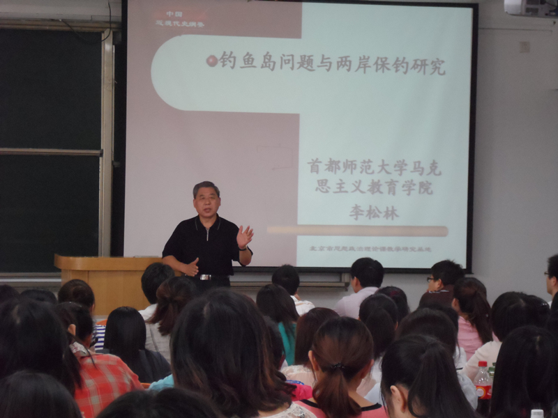 在讲座快要结束的时候,李松林教授也提到了最近的反日情绪和国内的恶性事件,他提出,面对钓鱼岛争端同学们应当理性爱国,冷静思考钓鱼岛事件,增强忧患意识,加强自身报国素质。