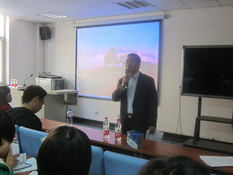 2012年11月14日,美国管理会计师协会(IMA)中国学术关系经理马丹分别在良乡和阜成路校区,为财务、会计专业的本科和研究生举办讲座。本次活动由财务管理系主任王力军主持,团总支书记秦东生和研究生辅导员祁飞参加。