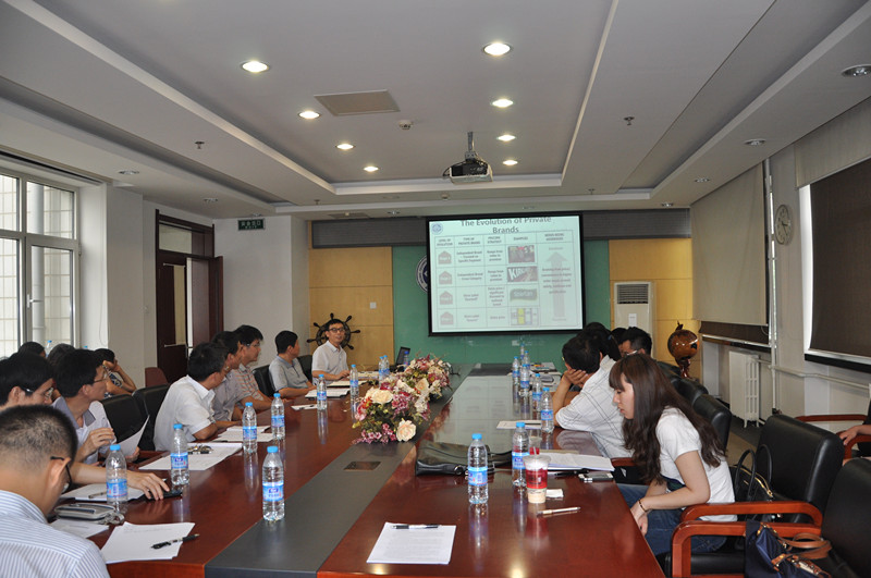 院长王国顺教授、中国商业史学会副会长庞毅教授及“企业自有品牌建设”课题组全体教师成员参加了会议。参加此次会议的校外来宾有北京品牌协会秘书长夏明先生,和王府井百货、赛特、菜百、超市发、新发地、凡客诚品等企业的管理人员代表。会议由刘文纲教授主持。
