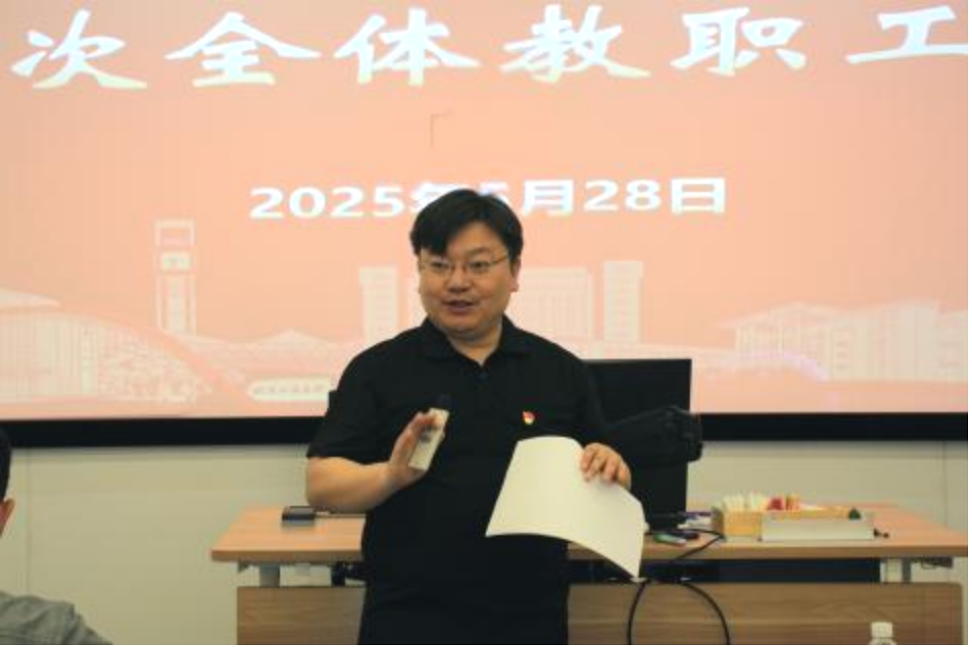 学校党委教师工作部副部长、人事处副处长马思潇用数据分析了教育系统违纪案例的类型、成因、处理结果、影响方面,指出违纪对个人、家庭、对方造成的深重伤害和对教师群体的不良影响,提醒全体老师从案例中汲取教训,引以为戒,时刻把纪律放在心上。