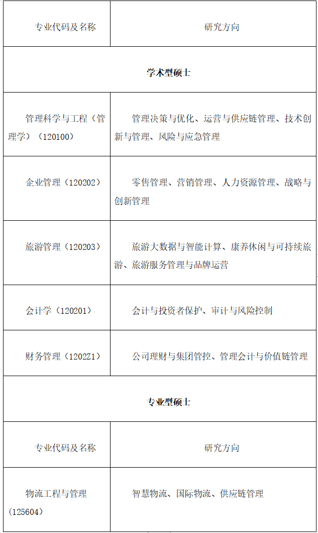 学院拥有完整的本硕博人才培养体系,优秀硕士研究生可申请硕博连读。2021年成功获批一级学科博士学位授权点,设有会计学、财务管理、管理科学与工程(管理学)、企业管理、旅游管理5个学术硕士学位授权点,设有工商管理硕士(MBA)、会计专业硕士(MPAcc)、工程管理硕士(MEM)、旅游管理硕士(MTA)4个专业硕士学位授权点;设有会计学、工商管理、财务管理、市场营销、人力资源管理、物流管理、供应链管理、旅游管理等8个国家级和北京市一流本科专业,截至目前共有学生3083人,其中博士生61人,留学生30人,研究生824人,本科生2198人。